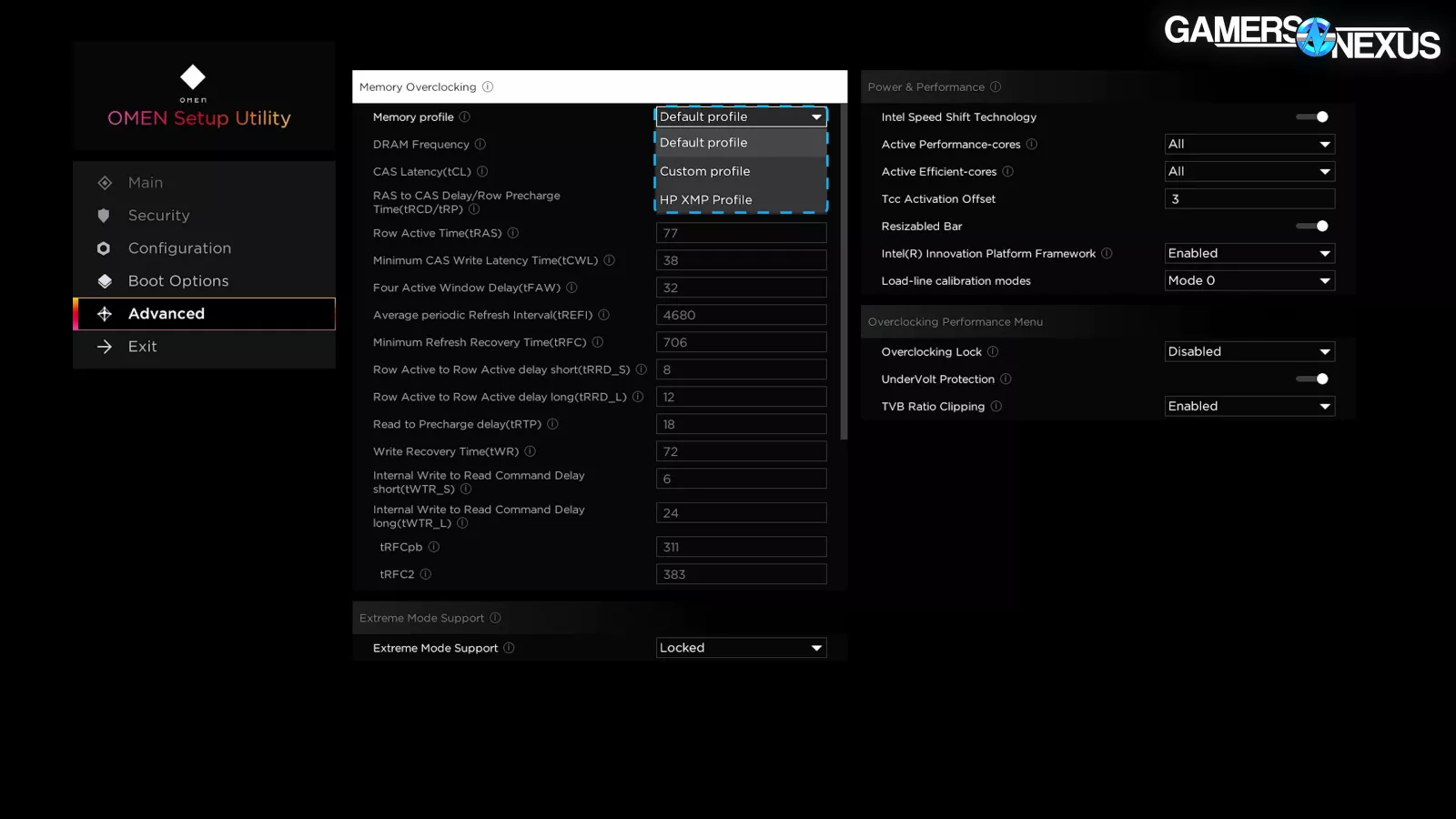 The rest of the advanced page has toggles for LLC modes, an overclocking lock, “Extreme Mode” support, and “Resizabled Bar.” While HP gave us an extra letter ‘D,’ it’s missing a few other things: Power limits aren’t present, so you can disable cores and adjust load-line calibration, but not change PL1 and PL2. You’d have to go to the app for that so HP can harvest your data or something.