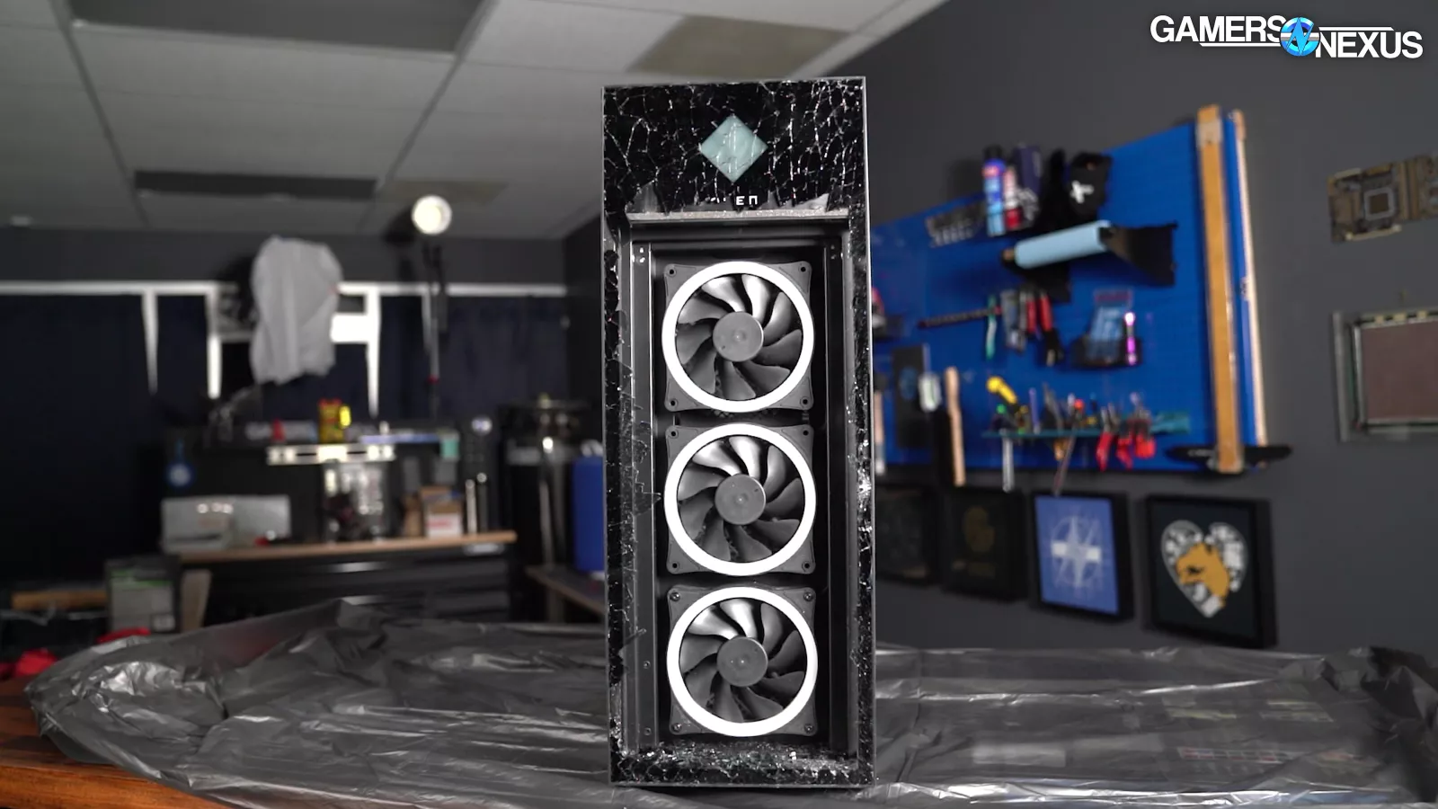 Their so-called “cryo chamber” is seriously hurting performance, anyway: By removing the radiator from its mummifying wrap and enclosed tomb of impedance, we reduced the temperature like-for-like by about 10 degrees Celsius. That is a huge improvement for something that’s supposed to be “Cryo.” If HP had mounted the radiator to the front of the case and put it behind a mesh panel, it’d probably split the difference here; instead, its patented gimmick is running the system hotter, which is contributing to their likely concern of noise levels if they were to run it properly. A better radiator location and chamber would reduce temperature, which would allow them to achieve the same thermals for similar noise, which would allow them to boost the CPU frequency.