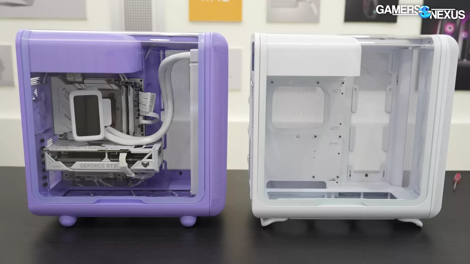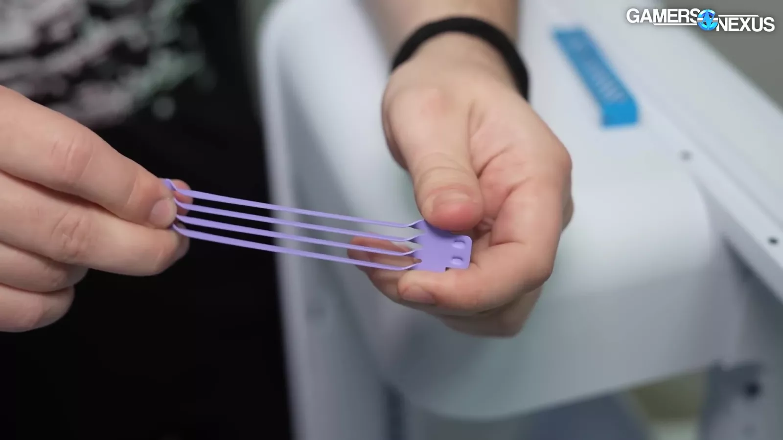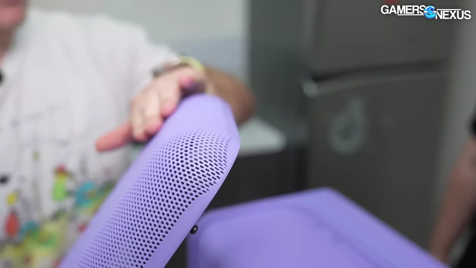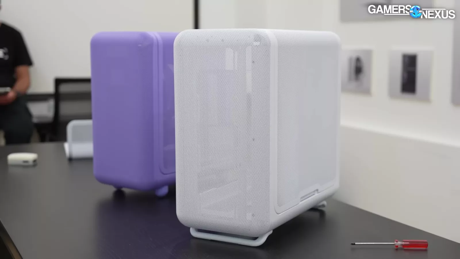 Another unit we looked at used lower porosity mesh on the edges, which is what the factory Hyte worked with said was the limit of what it could do. Hyte couldn’t accept this design, however, as they were targeting over 40% porosity. Teller says the X50’s final design ended up having about 45% porosity with 2mm holes and 3mm spacing.