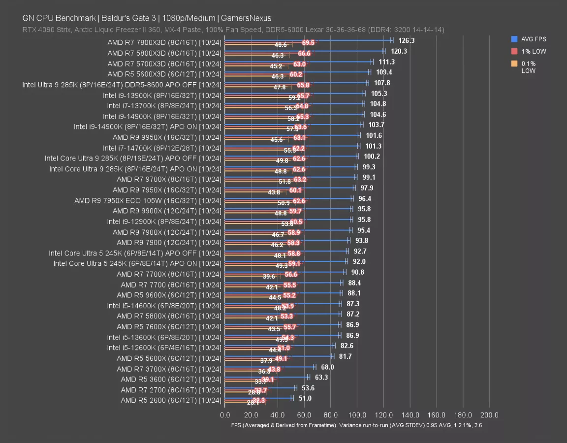 As for the 285K’s like-for-like lead over the 245K, that’s 8% at 100 FPS AVG.