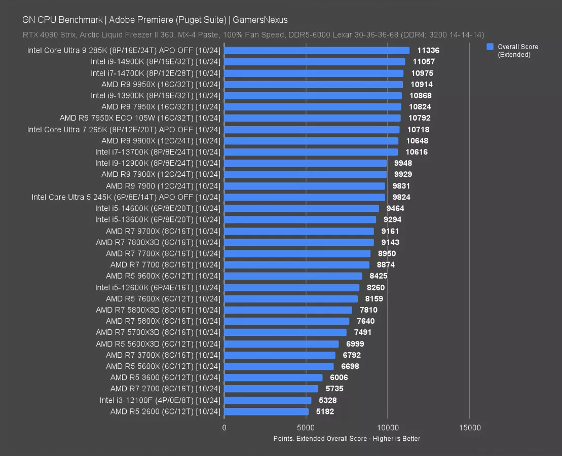 The 285K did well in this particular test and managed to outrank the 14900K, leading the 265K by 5.8%.