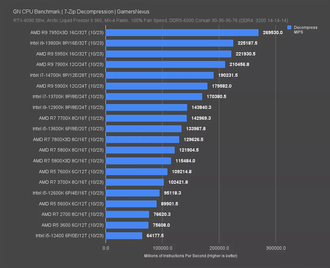 File compression and decompression are measured in millions of instructions per second.