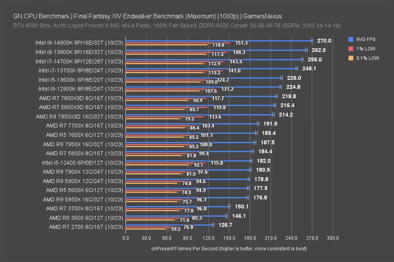 The 14900K is now formally the chart leader in FFXIV. They’ve done it. Intel wins -- we’ll stop here. Review over. The headline is now clear: Intel i9-14900K is the new king.