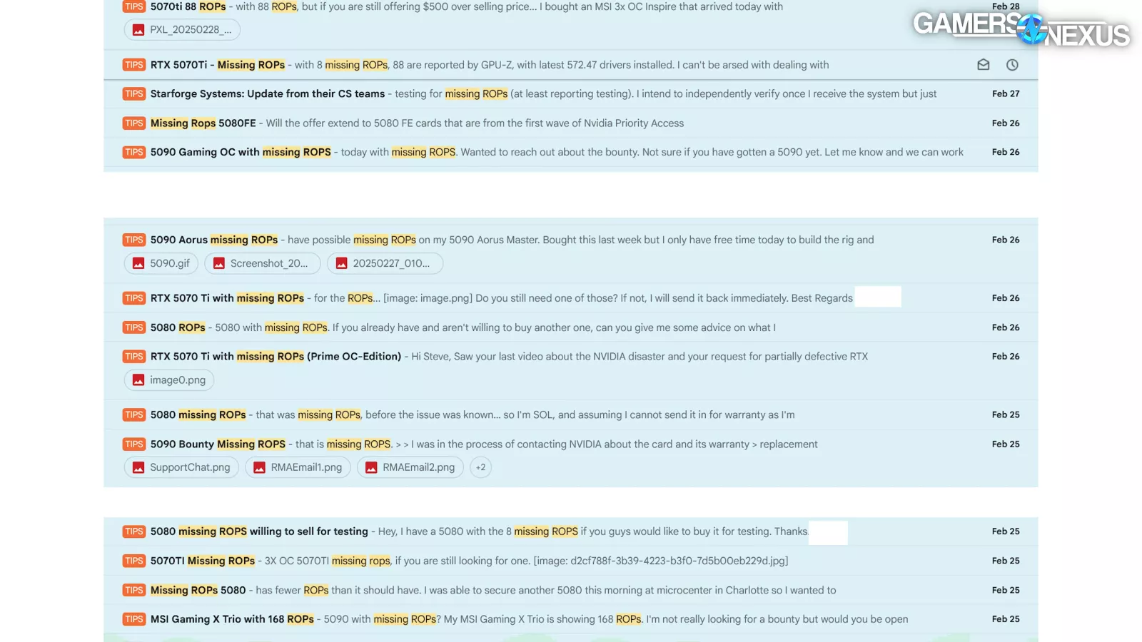 NVIDIA needs to do better about notifying customers. NVIDIA may claim 0.5%, but from first-hand experience in our inbox alone, we have a hard time believing the count is that low -- especially since it didn’t name the 5080. Either NVIDIA didn’t know about the 5080, in which case it’s wrong about the defect rate, or it did know and it was disingenuous at best by leaving it out. We’re not sure which is worse. We’ve received dozens of emails and messages about units deficient in ROPs count, which seems awfully high for a focused audience with seemingly low distribution of the card so far.
