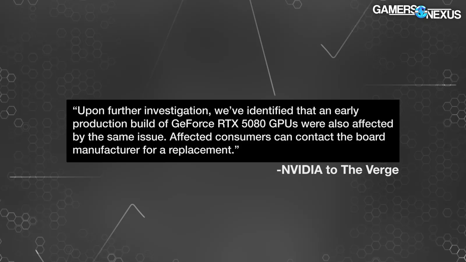 NVIDIA acknowledged this issue shortly after it emerged, but only for the 5070 Ti (read our review) and 5090 (read our review). It almost immediately somehow knew exactly how many units were affected, which further reinforces our belief that NVIDIA would have known about this, with the company pinning it to 0.5% of units. The company did not name the 5080 -- it also didn’t really apologize and we felt it downplayed the performance impact to the lowest number, which would be 4% on the 5090. It didn’t mention that the 5070 Ti and 5080 impact would be greater.