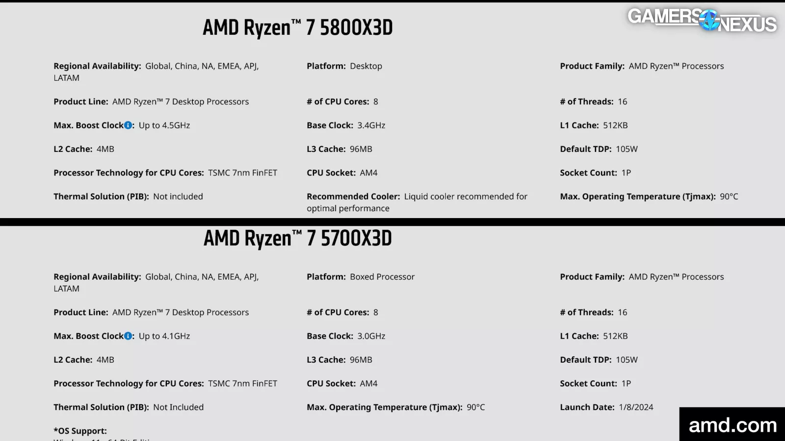 We’ll benchmark the 5700X3D and focus on the comparison against the 5800X3D (watch our review). We’ve been good with recommending the 5800X3D mostly since it launched, as it’s been one of the most competitive gaming chips. For brand new builds, it has lost some viability to new platforms, but particularly for existing owners of AM4 motherboards, these X3D CPUs offer the best option for a last-chance upgrade before moving to a new socket altogether.