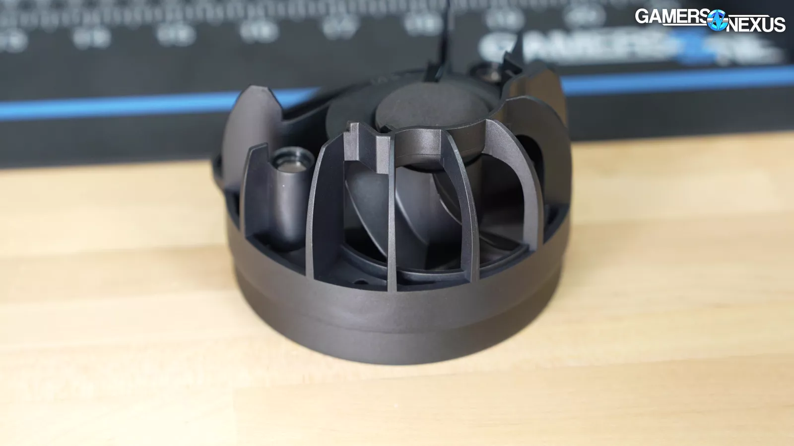 First, the separable pump cap stores the VRM fan within it. The cap looks like a fan, but it’s not -- it’s just a cap. The actual VRM fan is inside, and it’s much larger than the prior one. This should improve airflow significantly as long as it’s directed in the right places.