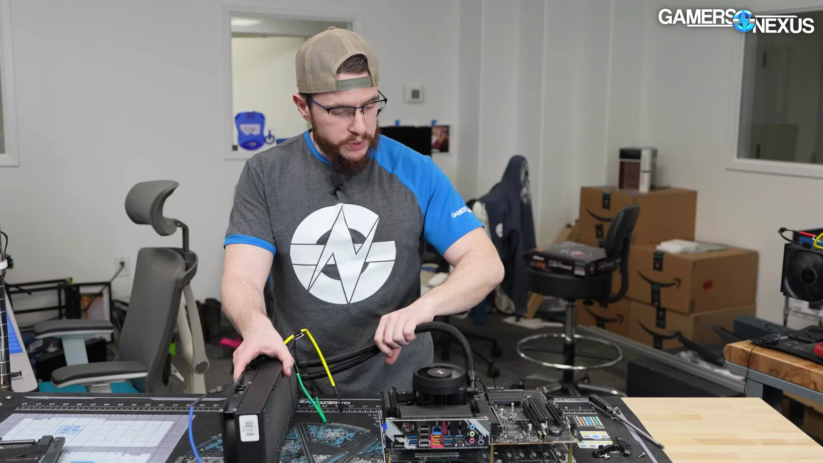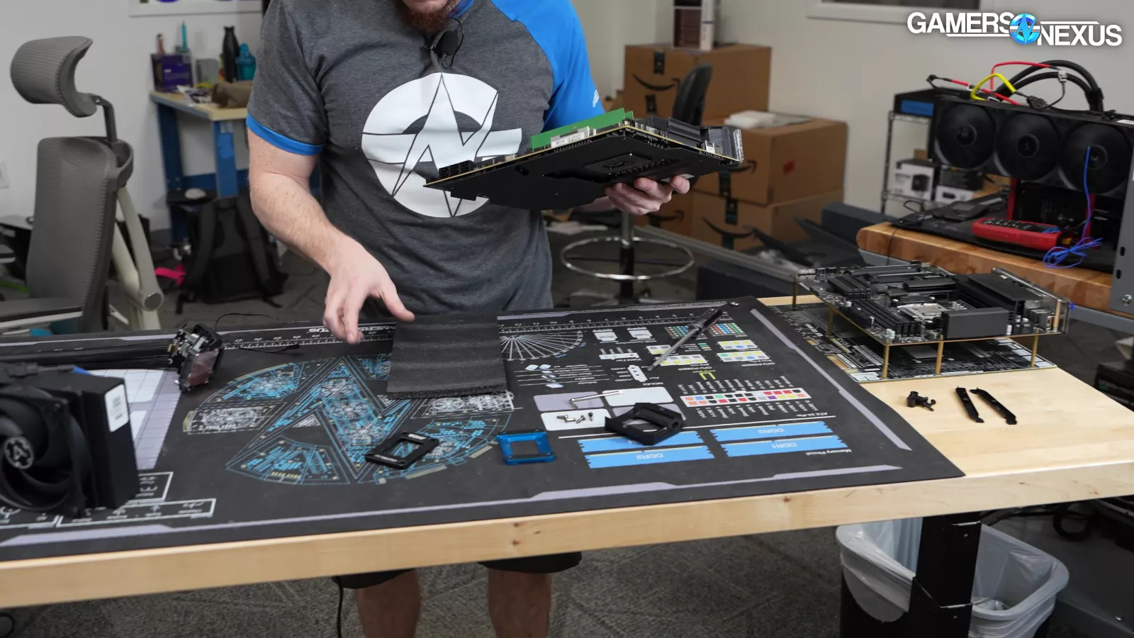We most recently used this in our Billet Block review of the monoblock -- you can check that out for more background. This equipment allows us to not only identify a problem, but try to pinpoint the cause. To help fund our efforts and equipment purchases like this, as we’re still getting the money back on it, please go to store.gamersnexus.net and grab a GN15 metal emblem glass (featuring a high-quality badge) for our 15th anniversary, a rugged Large Modmat for your next PC build, or one of our memory explosion diagram T-shirts. Thanks for your support.