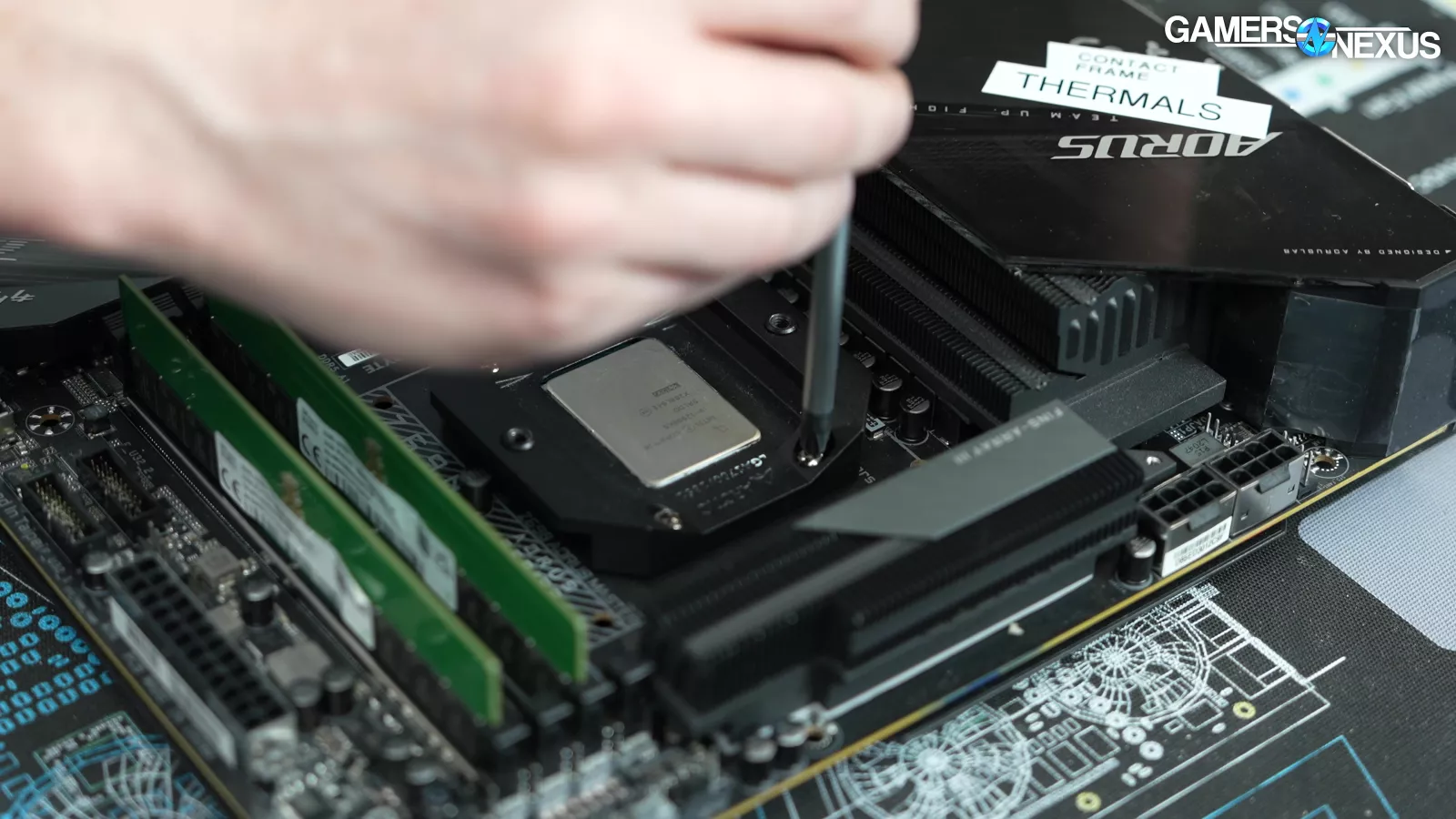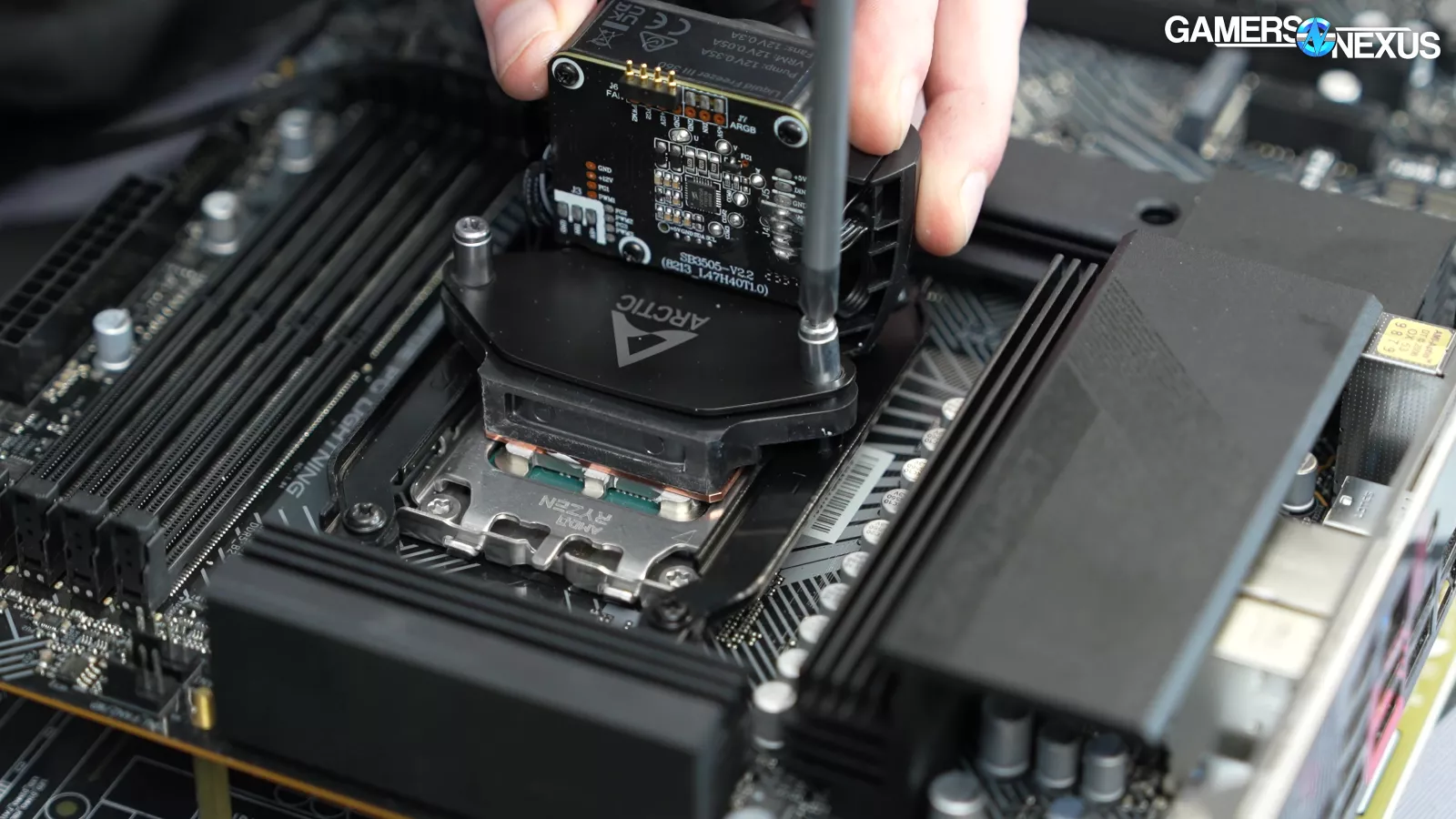 In theory, making the frame and being in control of the cold plate, which they are, should make for the best possible pressure and contact distribution across an IHS that you could get. If you buy a solution from Thermal Grizzly or Thermalright, they're just selling you the frame, so being able to mate the cold plate to a particular frame is a strength that the others don't currently have. It's something we hope that Arctic is able to leverage properly. Spoiler alert: It's not perfect.