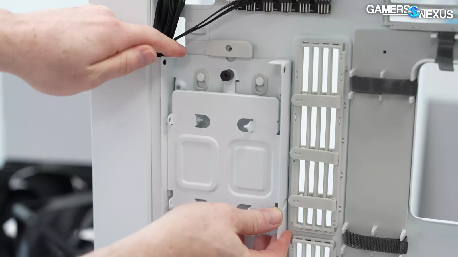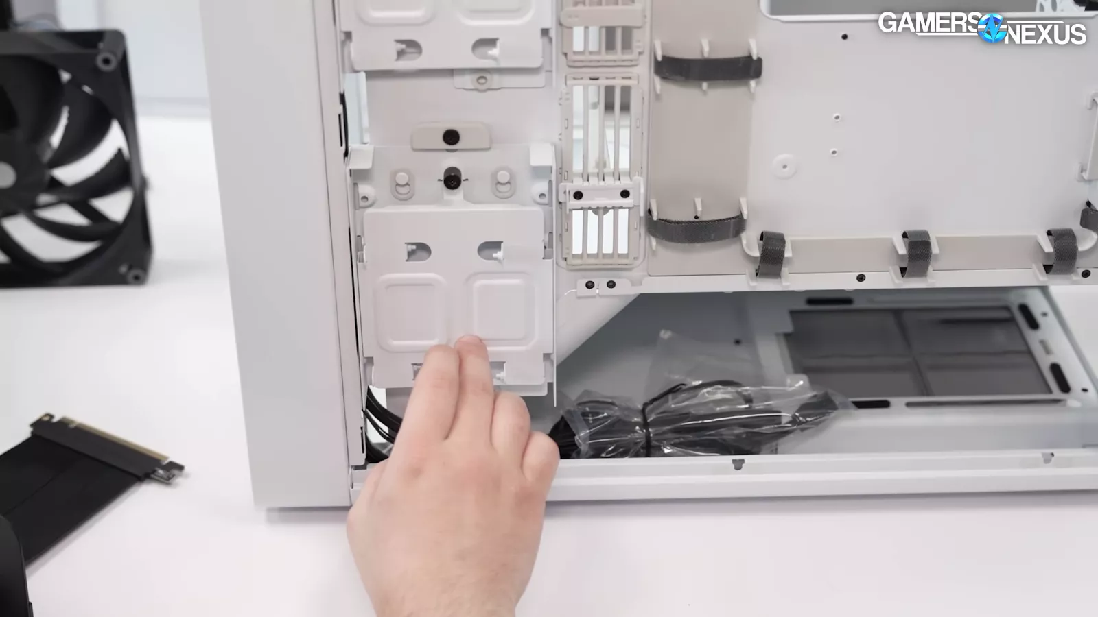 The interior of the case’s front panel has a removable fan tray. Its design is somewhat typical but refined from what we’ve seen. HAVN has done a lot of iterations on it.