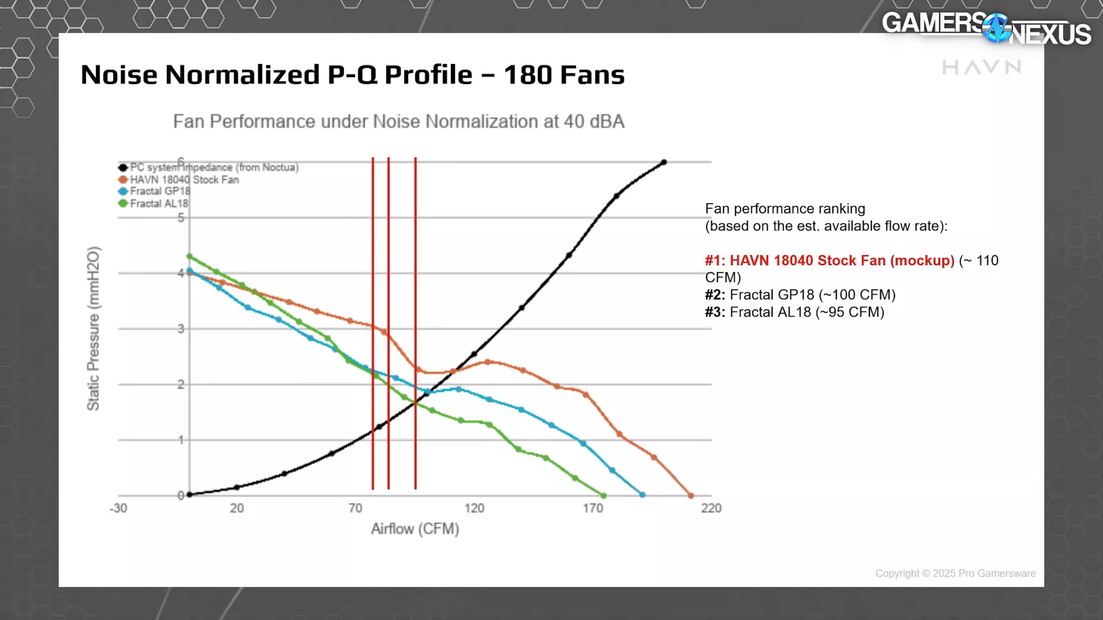 - HAVN’s 180mm fan uses a 40mm thick frame and special shaping on the hub for what HAVN claims will improve pressure performance across the hub