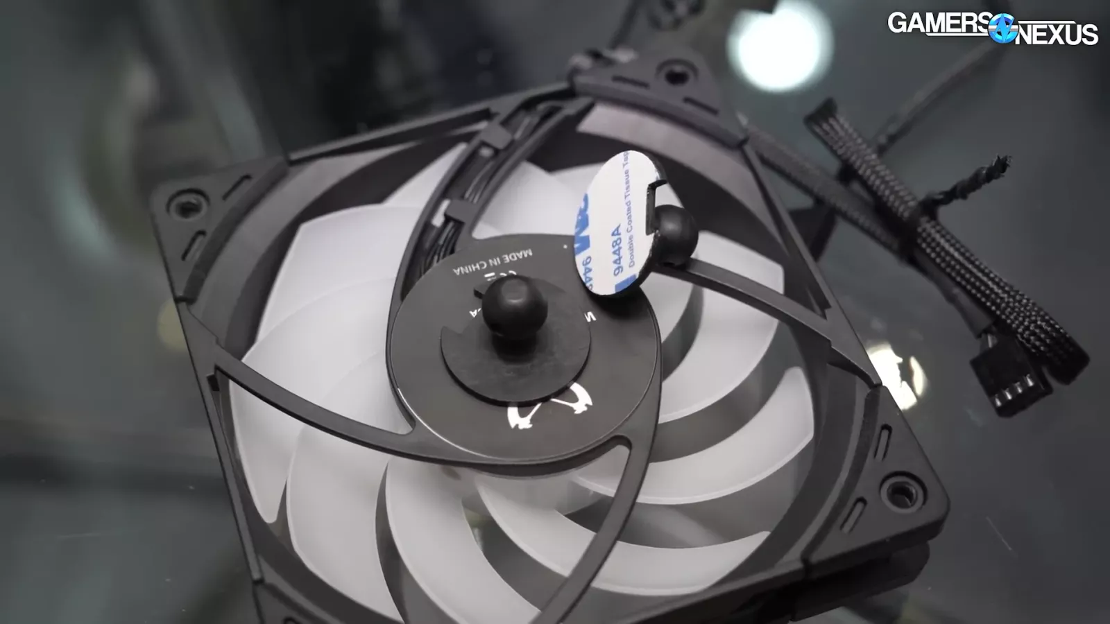 The company also showed us a 3D-printed prototype peg with a piece of tape underneath it, which allows you to essentially stick it to any fan you want. A fan can then socket on top of the cooler and be angled to shoot air down toward the VRM or RAM, etc.