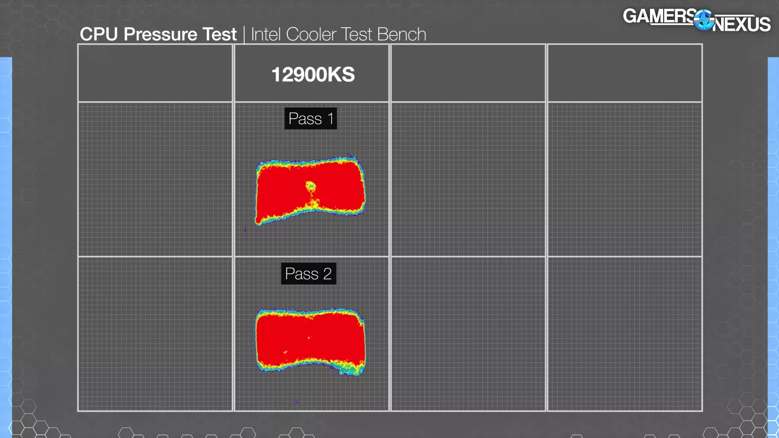 On Intel, the pressure scans showed good contact across the center channel of the IHS. It’s lacking on the far sides nearest the ILM clamp points, but the cold plate is making good contact everywhere the silicon is present. This high pressure across the die area likely explains the performance we saw earlier -- that plus the louder fans when at 100% load.
