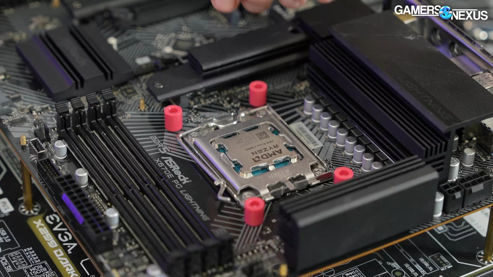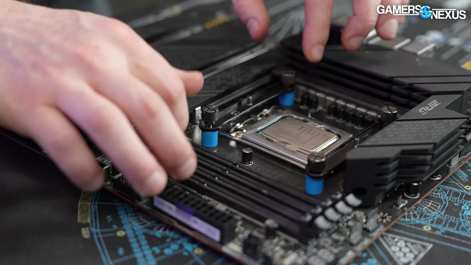 With that done, it’s time to slide on the blue retaining washers, which help hold the standoffs in place.