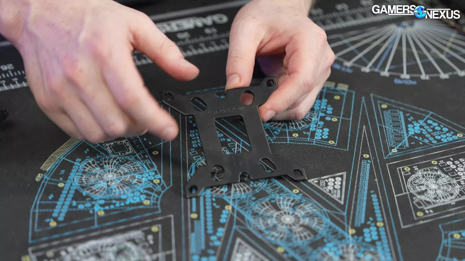 For installation on Intel, you’ll start by grabbing the backplate and ensure that the logo/labeling faces away from the motherboard.
