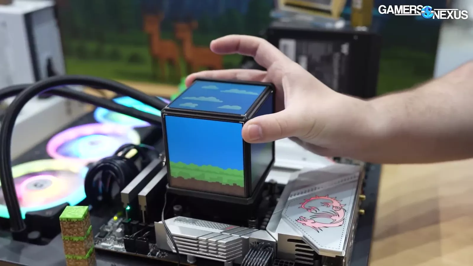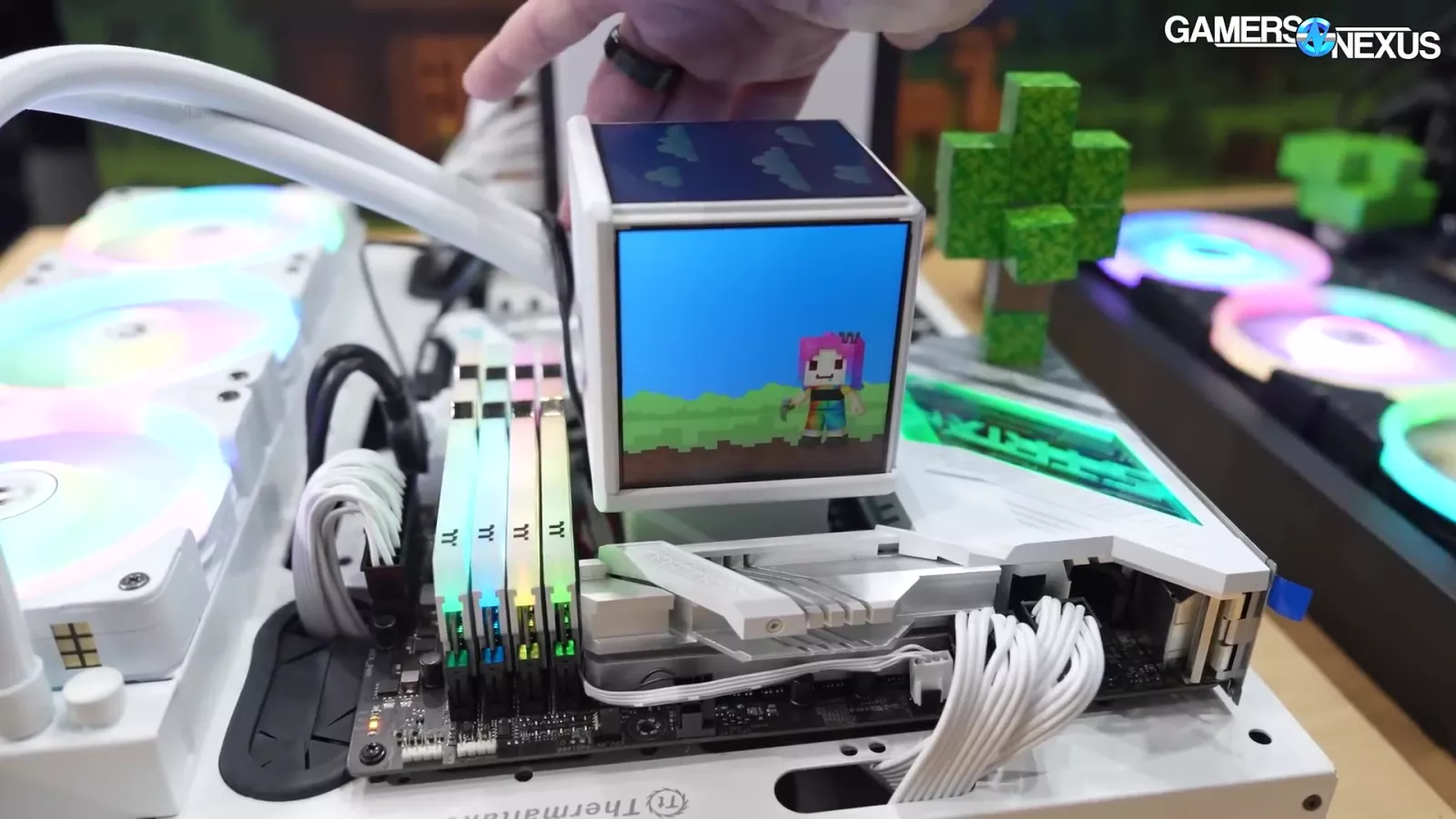 - Thermaltake’s Mine Cube looks very reminiscent of another popular IP and offers a cooler block with 4 screens