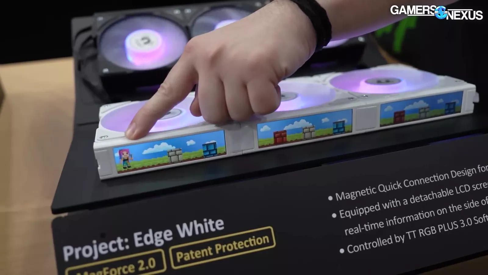 Thermaltake also showed off an early prototype of its Project Edge set of fans, which offers a series of progressing screens. The company thinks this is where the future of fans might be. To add some context here, Lian Li makes a bunch of money selling fans with LCDs on them. Now the direction might be LCDs on the side of fans.