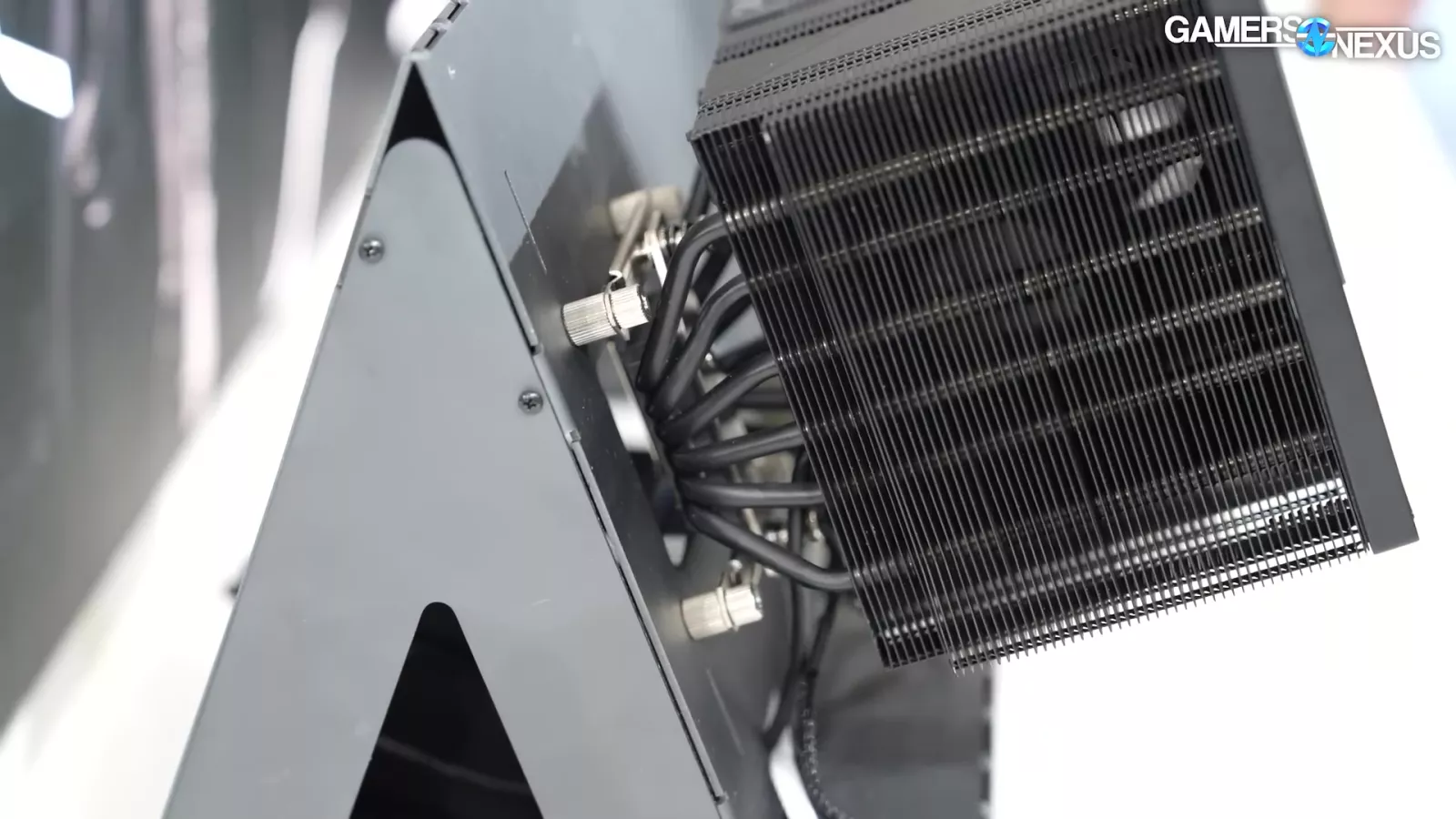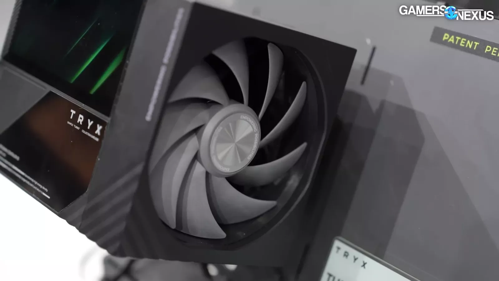 The downside to this crossflow fan design is that it reduces the maximum size of the axial fans on the front. The unit we saw at Computex coupled the crossflow fans with 120mm ones. Without the crossflow fans, TRYX says it thinks it could fit 200mm fans in the front and definitely 160mm ones and maybe 180mm fans. This poses an interesting A/B testing scenario: For instance, do 120mm fans coupled with crossflow ones perform better than just 200mm fans? We don’t have those answers at the moment.