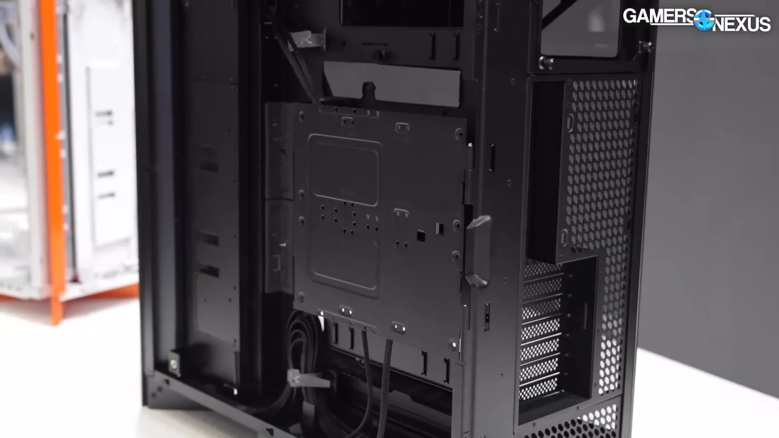 Taking a look at the back of the case, the company has added an extra hole to help with 3 and 1/2 -inch drive support, where there was an issue with that previously. The updated case also moves the 2 and ½-inch holes up, which was done to allow you to access the SATA connectors. We previously complained about how you couldn’t get into the SATA connector once the drive is installed so that change is supposed to fix that issue.
